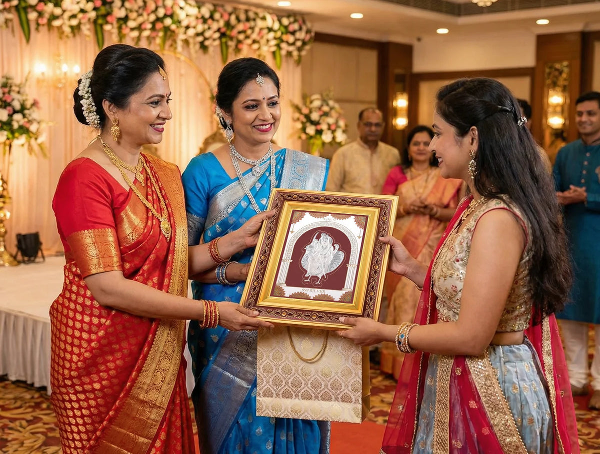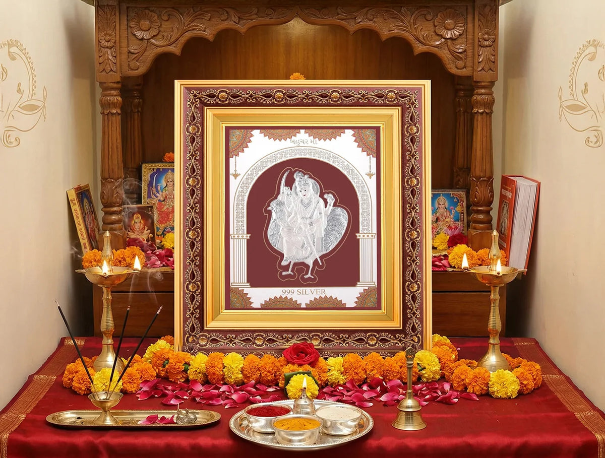999 Pure Silver BAHUCHARMAA Frame | Wall Mount Square Photo for Gift, | hanging frame (10.50" x 9" Inch) - Silver