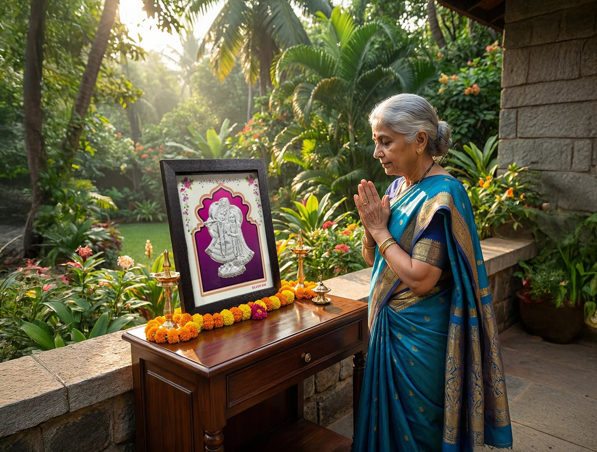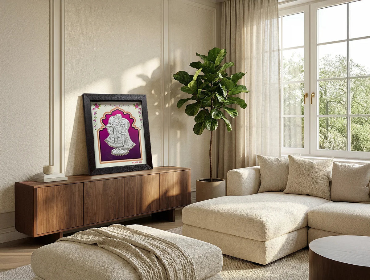- Premium 999 Pure Silver Craftsmanship - Crafted using superior 999 pure silver, this Radhakrishna frame showcases exceptional shine and clarity, reflecting traditional Indian silver artistry at its finest. The detailing is inspired by premium handcrafted pieces found at reputed brands like Prachi Silver and Touch999, ensuring
